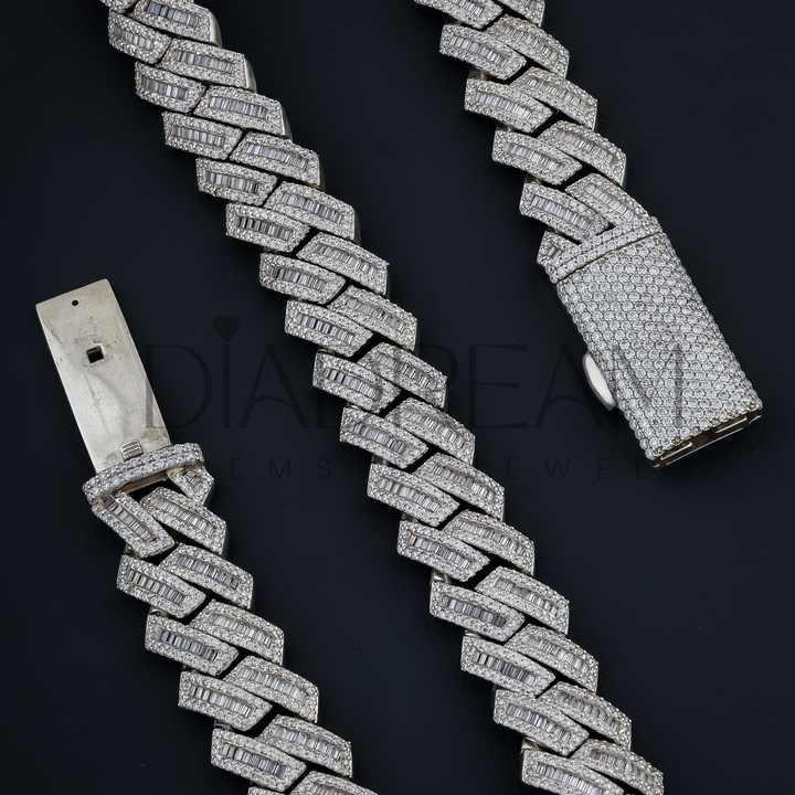 Baguette and Round Cut Diamond 925 Sterling Silver Chain Necklace for Men Hip Hop Style Jewelry for Wedding Party Gift