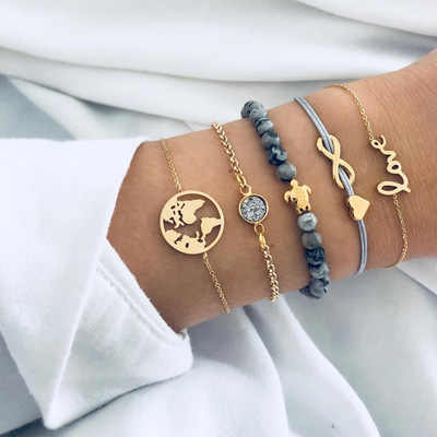 Boho Crystal Charm Bead Bracelet Set with Moon Star Design – Silver Gold Plated Link Chain Bohemian Jewelry Gift for Women
