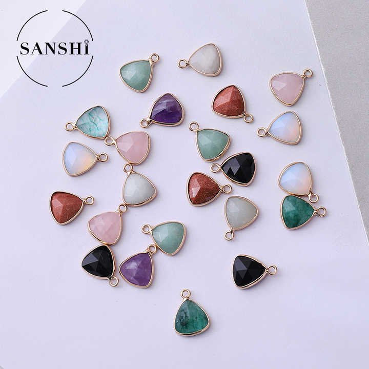 Crafted with natural crystal quartz and rhinestone accents, this triangular pendant features a sleek gold-plated copper alloy setting for timeless elegance. Measuring 12mm in size, the faceted stone showcases a geometric bezel-set design, offering a subtle sparkle suitable for daily wear or gifting. The unisex charm pendant adapts to multiple jewelry styles, easily paired with chains or cords for personalized layering. Made from durable copper alloy with gold plating, it retains its luster while resisting tarnish. Customizable color options are available upon request, allowing coordination with any outfit or occasion. Each pendant is securely packaged in a protective OPP bag, ensuring safe delivery. Ideal for wholesale orders with a 20-piece MOQ, this luxury accessory ships within 7-15 days. Its compact 1x2x1 cm size and lightweight construction make it comfortable for all-day use, blending classic aesthetics with modern versatility for both casual and formal ensembles.