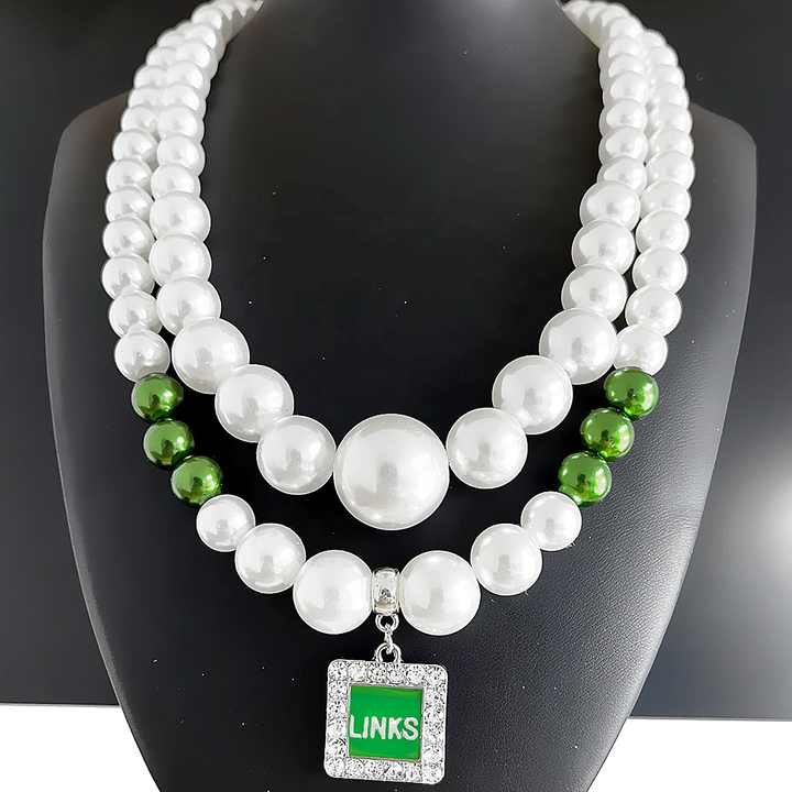 Crafted for elegance and symbolism, this sorority necklace features a large floral pendant adorned with green and white beads, complemented by a sleek silver-plated chain. Made with high-quality ABS pearls, this beaded necklace combines durability with a lustrous finish. The pendant measures 10x8x6 cm, making it a statement piece suitable for weddings, engagements, anniversaries, or parties. Its unisex design caters to women, men, and children, offering versatility for various occasions. The eco-friendly materials ensure a lightweight feel at 0.200 kg, while the pearl chain adds a touch of sophistication. Ideal as a meaningful gift, this trendy jewelry piece arrives securely packed in an Opp bag, ready for gifting or personal use. Emphasizing both style and sustainability, it blends floral artistry with timeless charm for everyday wear or special celebrations.