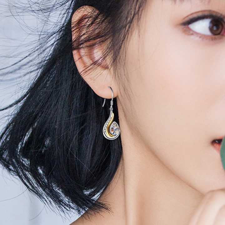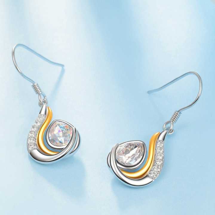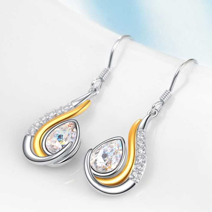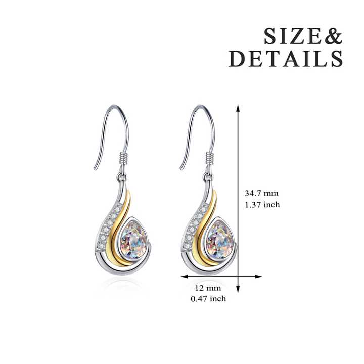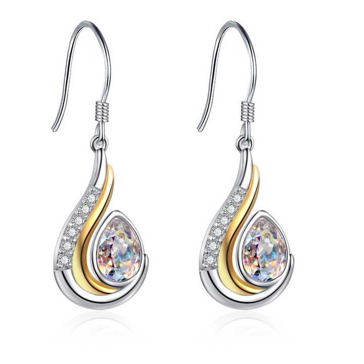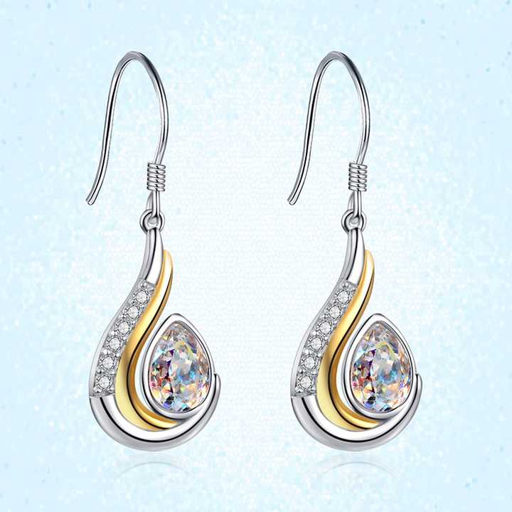 Vintage Two Tone 925 Sterling Silver Water Drop Crystal Hook Earrings for Women