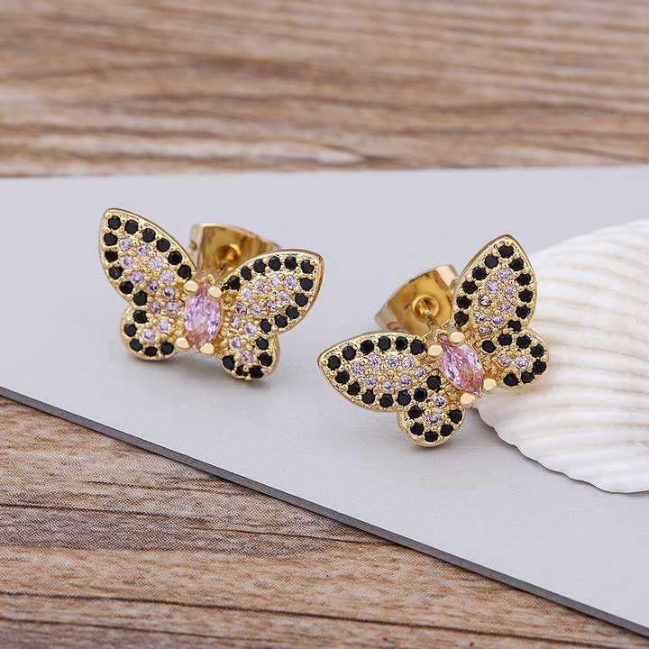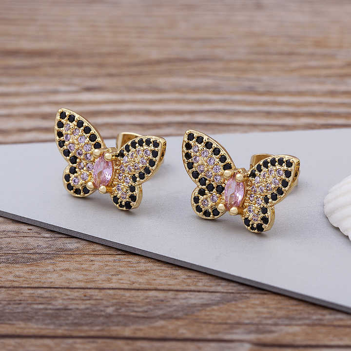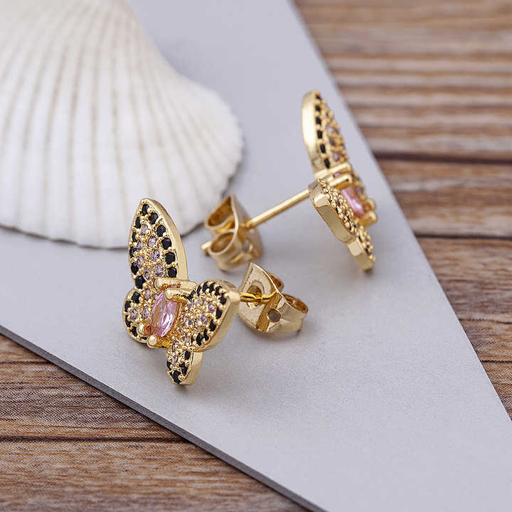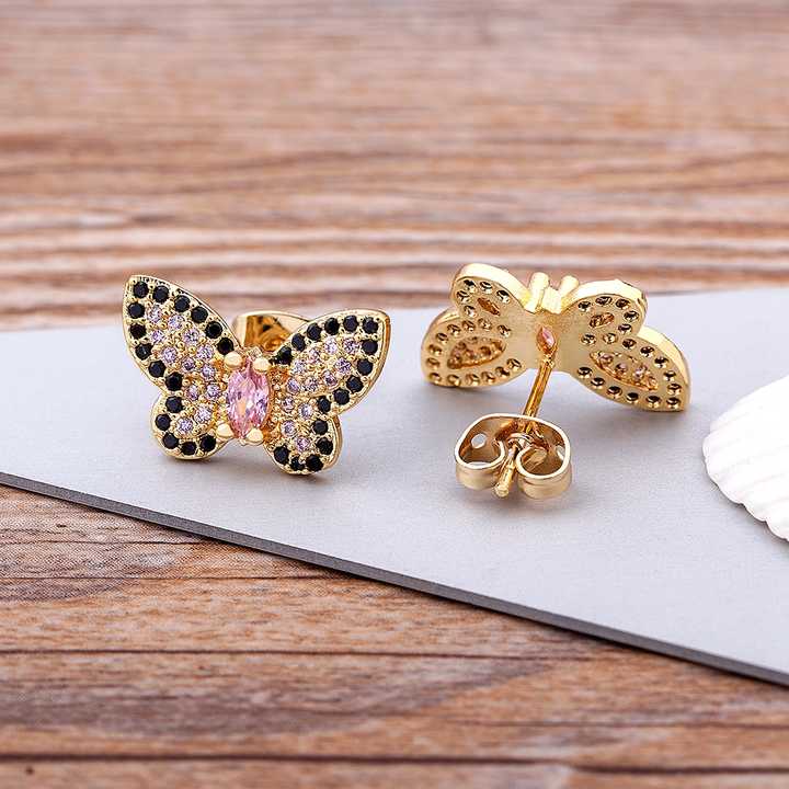 Elevate your style with these exquisite Butterfly Cubic Zirconia Stud Earrings, crafted from premium copper with a lustrous gold-plated finish. Featuring meticulously set cubic zirconia stones in a delicate butterfly design, these earrings combine durability with timeless elegance. The endless insert inlay technology ensures secure stone placement, while the hypoallergenic copper base provides comfort for daily wear. Measuring 10X8X2 cm and weighing just 20 grams, these lightweight studs are ideal for sensitive ears. Perfect for weddings, anniversaries, parties, or as a thoughtful gift, these trendy earrings add sophistication to both casual and formal outfits. The butterfly motif symbolizes transformation, making them meaningful for engagements, graduations, or personal milestones. Each pair arrives in protective packaging, ready for gifting. Designed in Guangdong, China, these versatile accessories pair beautifully with necklaces or bracelets for coordinated elegance.